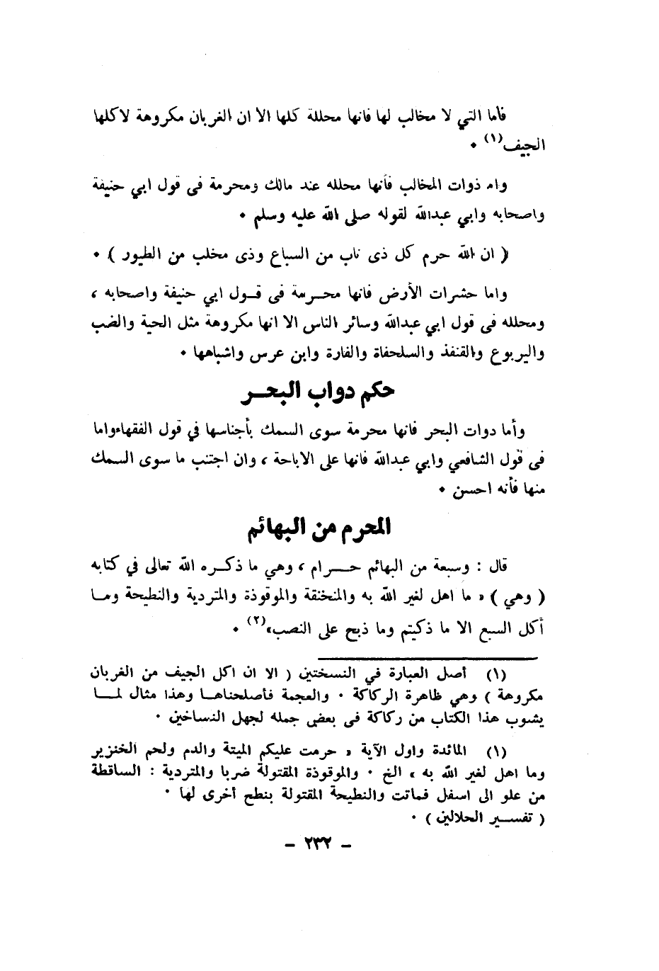 فاما الَّتِي لَا مخالب لَهَا فانها محللة كلهَا الا ان الْغرْبَان مَكْرُوهَة لاكلها الْجِيَف