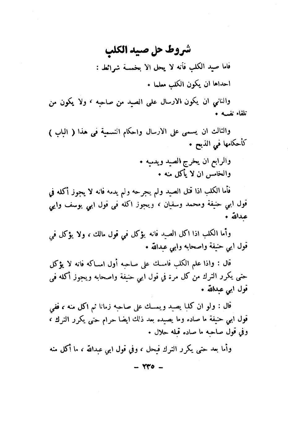 فاما صيد الْكَلْب فانه لَا يحل الا بِخَمْسَة شَرَائِط