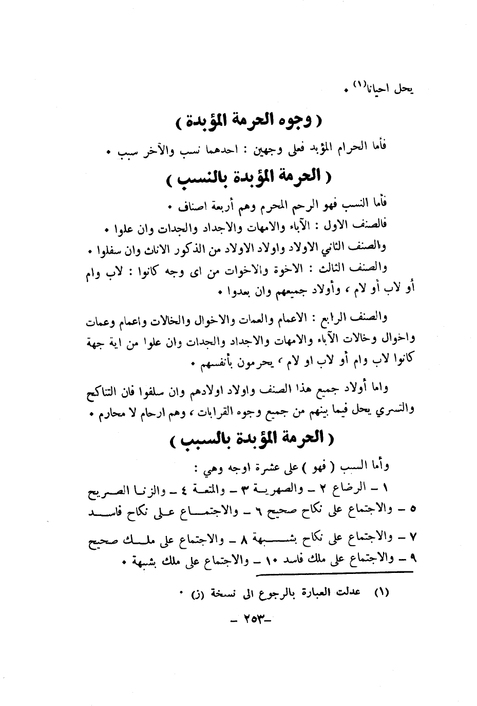 فَأَما الْحَرَام المؤبد فعلى وَجْهَيْن احدهما نسب وَالْآخر سَبَب