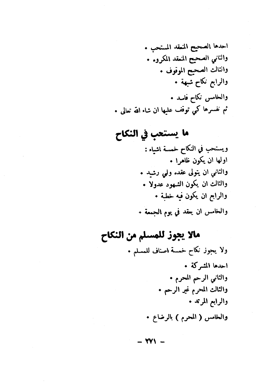 وَيسْتَحب فِي النِّكَاح خَمْسَة اشياء