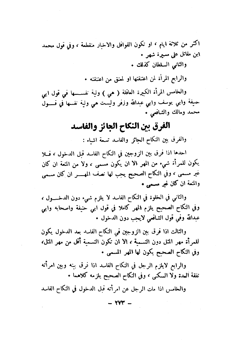 وَالْفرق بَين النِّكَاح الْجَائِز وَالْفَاسِد تِسْعَة اشياء