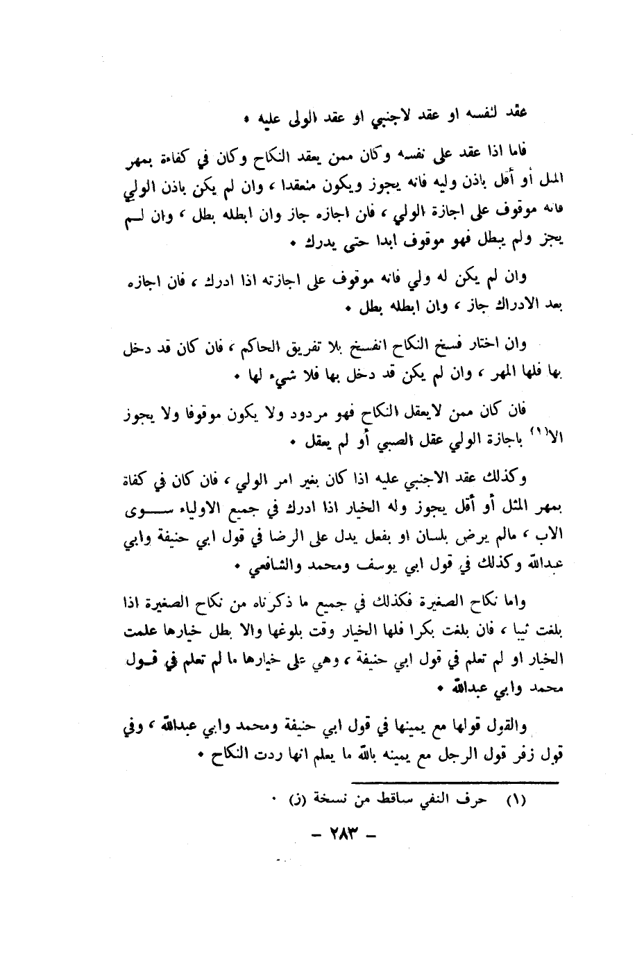 وان لم يكن لَهُ ولي فانه مَوْقُوف على اجازته اذا اِدَّرَكَ فان اجازه بعد الادراك جَازَ وان ابطله بَطل