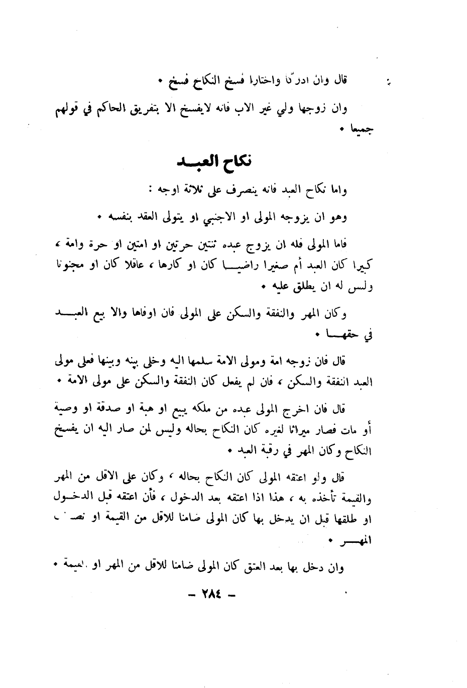 واما نِكَاح العَبْد فانه ينْصَرف على ثَلَاثَة اوجه