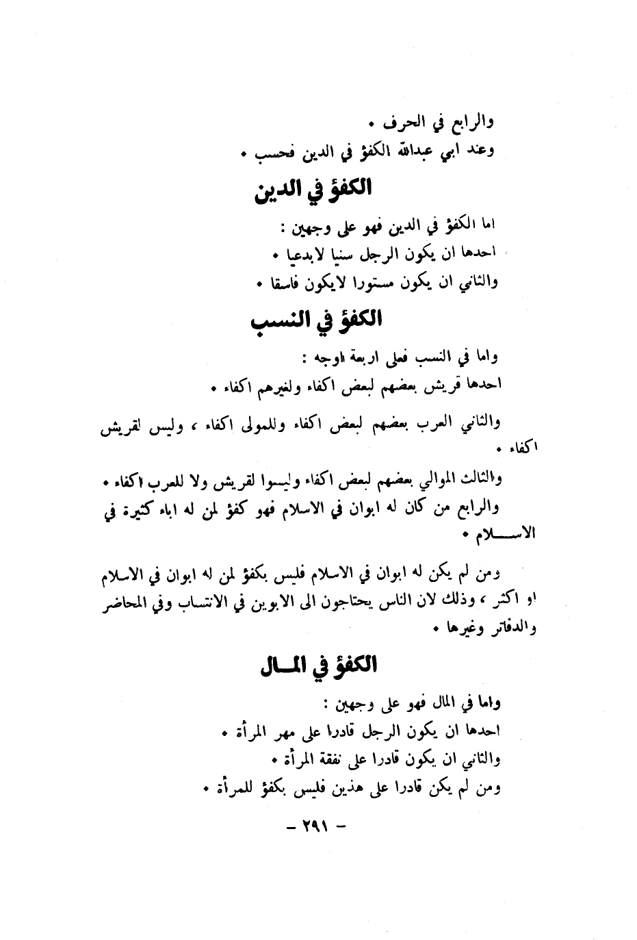 اما الكفؤ فِي الدّين فَهُوَ عَليّ وَجْهَيْن