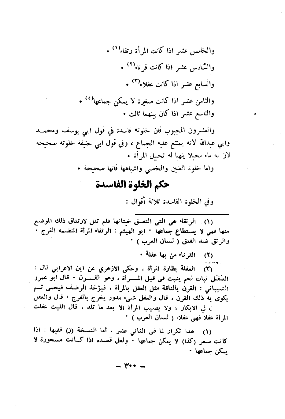 وَالسَّابِع عشر اذا كَانَت عفلاء