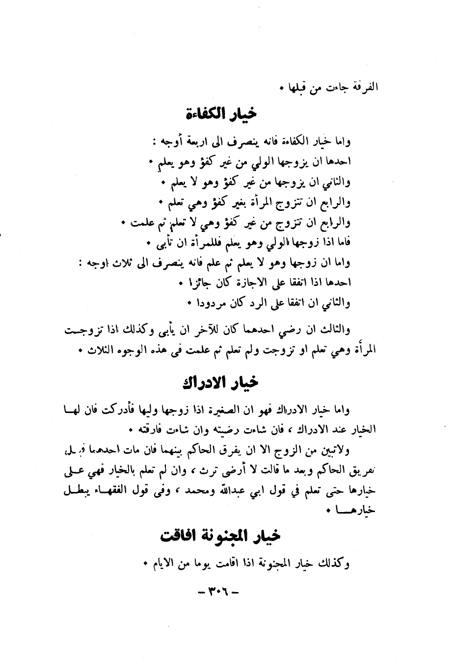واما خِيَار الْكَفَاءَة فانه ينْصَرف الى اربعة أوجه