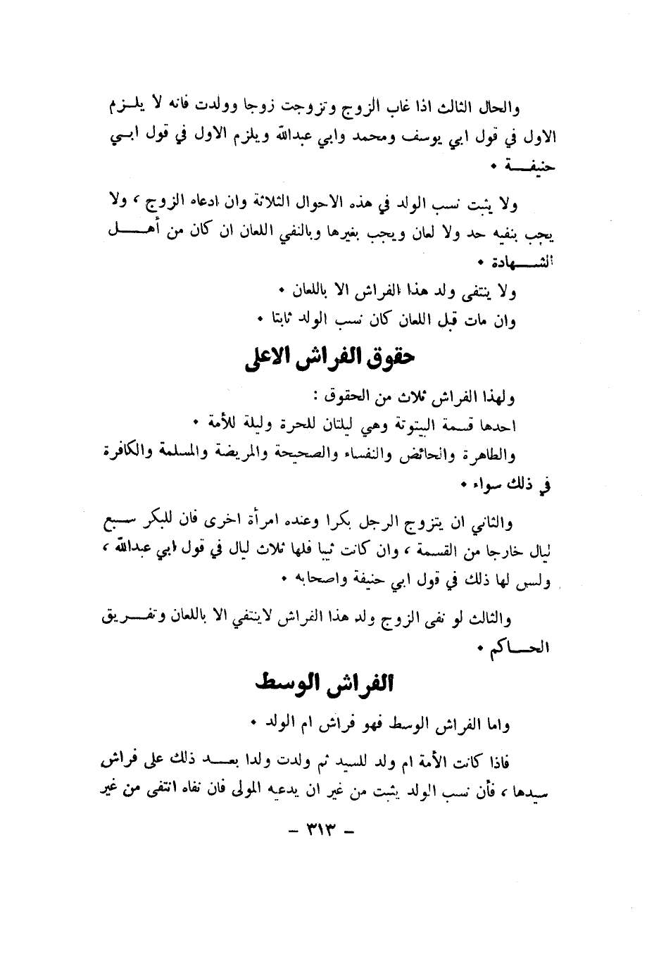 واما الْفراش الْوسط فَهُوَ فرَاش ام الْوَلَد
