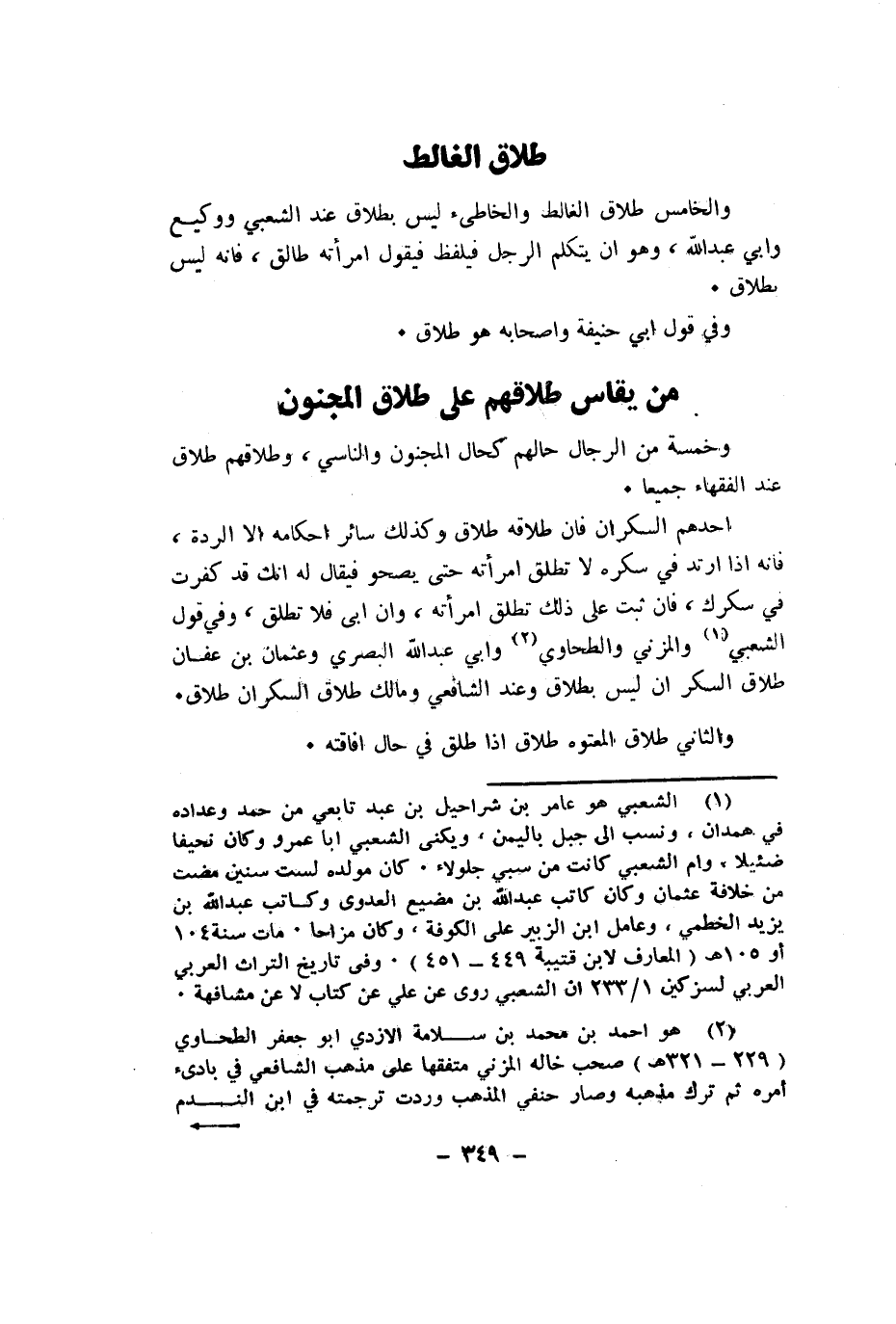 احدهم السَّكْرَان فان طَلَاقه طَلَاق وَكَذَلِكَ سَائِر احكامه الا الرِّدَّة فانه اذا ارْتَدَّ فِي سكره لَا تطلق امْرَأَته حَتَّى يصحو فَيُقَال لَهُ انك قد كفرت فِي سكرك فان ثَبت على ذَلِك تطلق امْرَأَته وان ابى فَلَا تطلق وَفِي قَول الشّعبِيّ والمزني والطَّحَاوِي وابي عبد الله الْبَصْرِيّ وَعُثْمَان بن عَفَّان طَلَاق السَّكْرَان لَيْسَ بِطَلَاق وَعند الشَّافِعِي وَمَالك طَلَاق السَّكْرَان طَلَاق