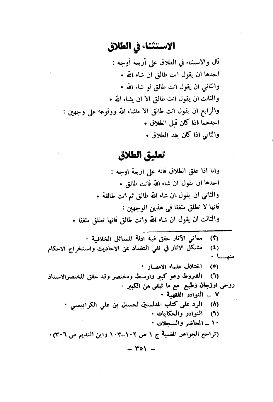 قَالَ وَالِاسْتِثْنَاء فِي الطَّلَاق على أَرْبَعَة أوجه