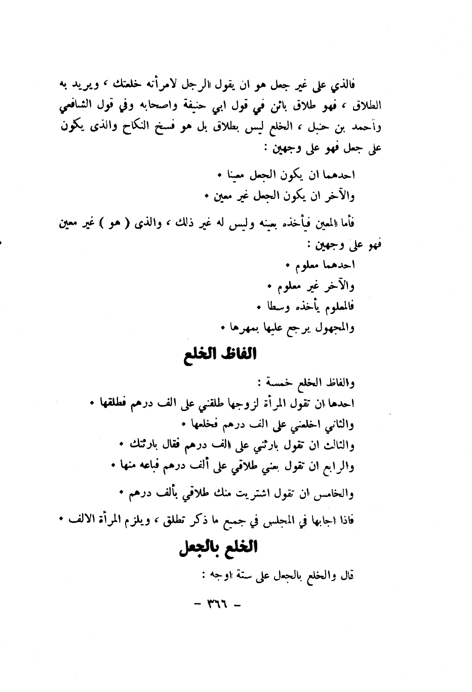 قَالَ وَالْخلْع بالجعل على سِتَّة اوجه