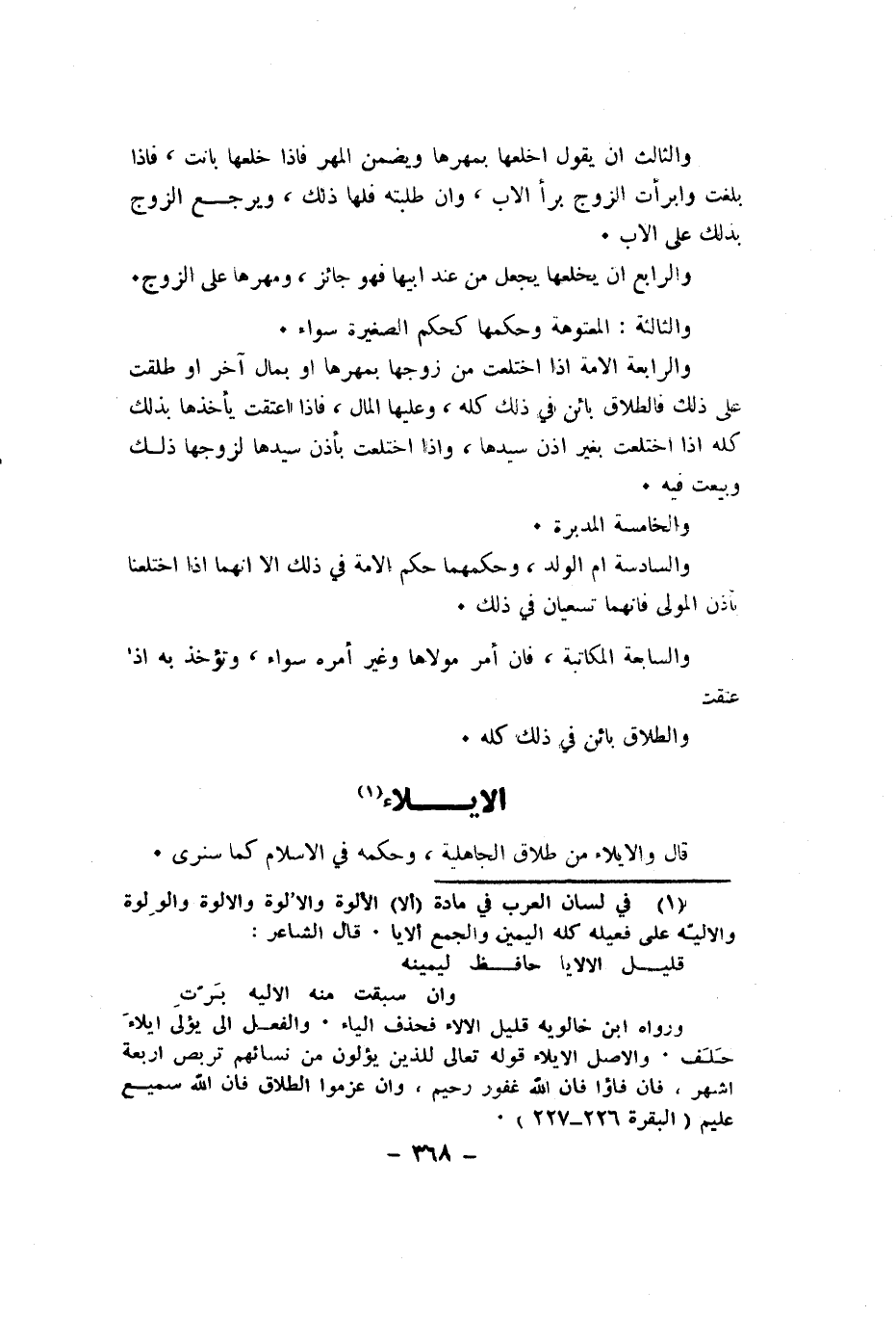 قَالَ والايلاء من طَلَاق الْجَاهِلِيَّة وَحكمه فِي الاسلام كَمَا سنرى