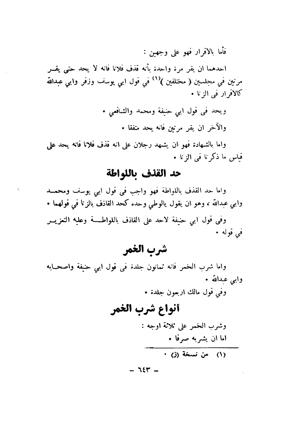 وَشرب الْخمر على ثَلَاثَة اوجه