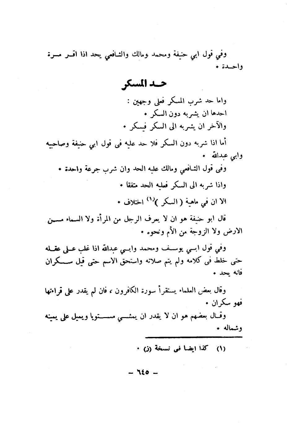 الا ان فى مَاهِيَّة السكر اخْتِلَاف