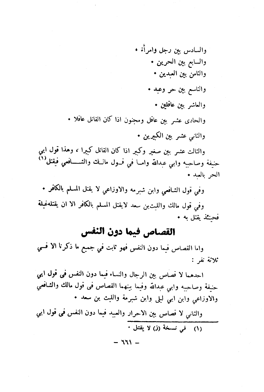 والحادى عشر بَين عَاقل وَمَجْنُون اذا كَانَ الْقَاتِل عَاقِلا