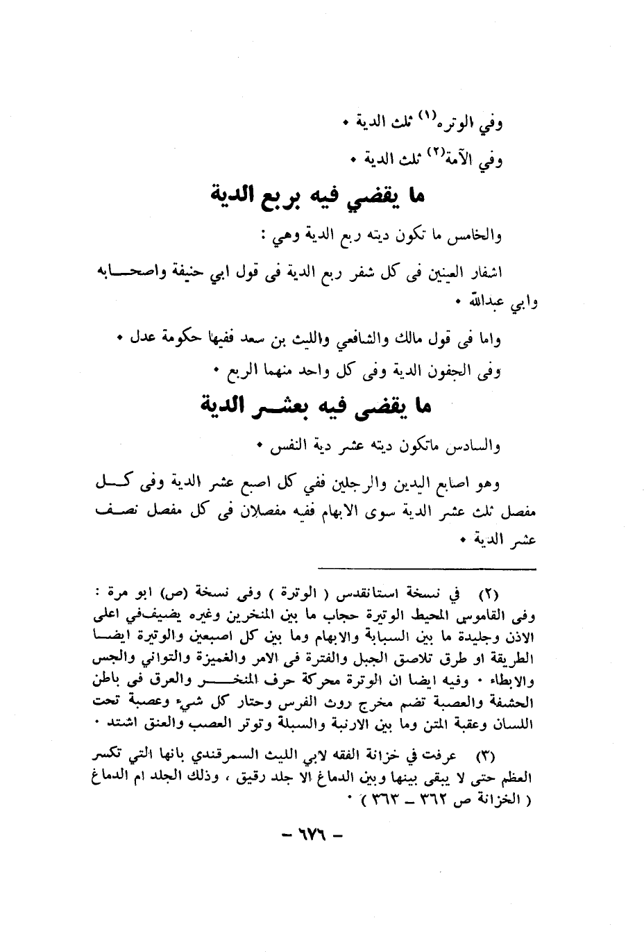 اشفار الْعَينَيْنِ فى كل شفر ربع الدِّيَة فى قَول ابي حنيفَة واصحابه وابي عبد الله