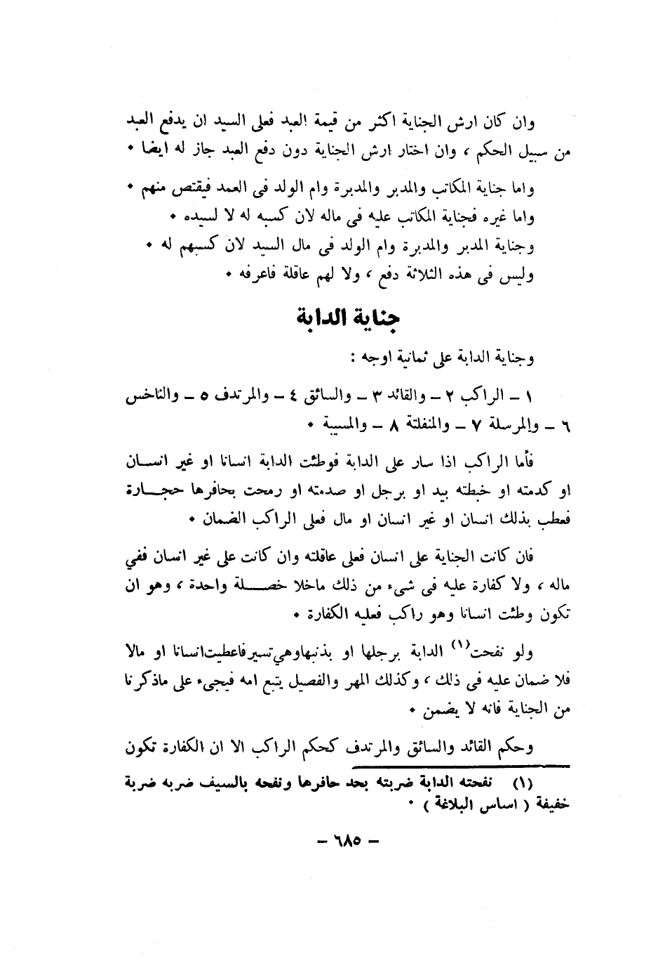 فَأَما الرَّاكِب اذا سَار عَليّ الدَّابَّة فوطئت الدَّابَّة انسانا اَوْ غير اسنان اَوْ كدمته اَوْ خبطته بيد اَوْ بِرَجُل اَوْ صدمته اورمحت بحافرها حِجَارَة فَعَطب بذلك انسان اَوْ غير انسان اَوْ مَال فعلى الرَّاكِب الضَّمَان