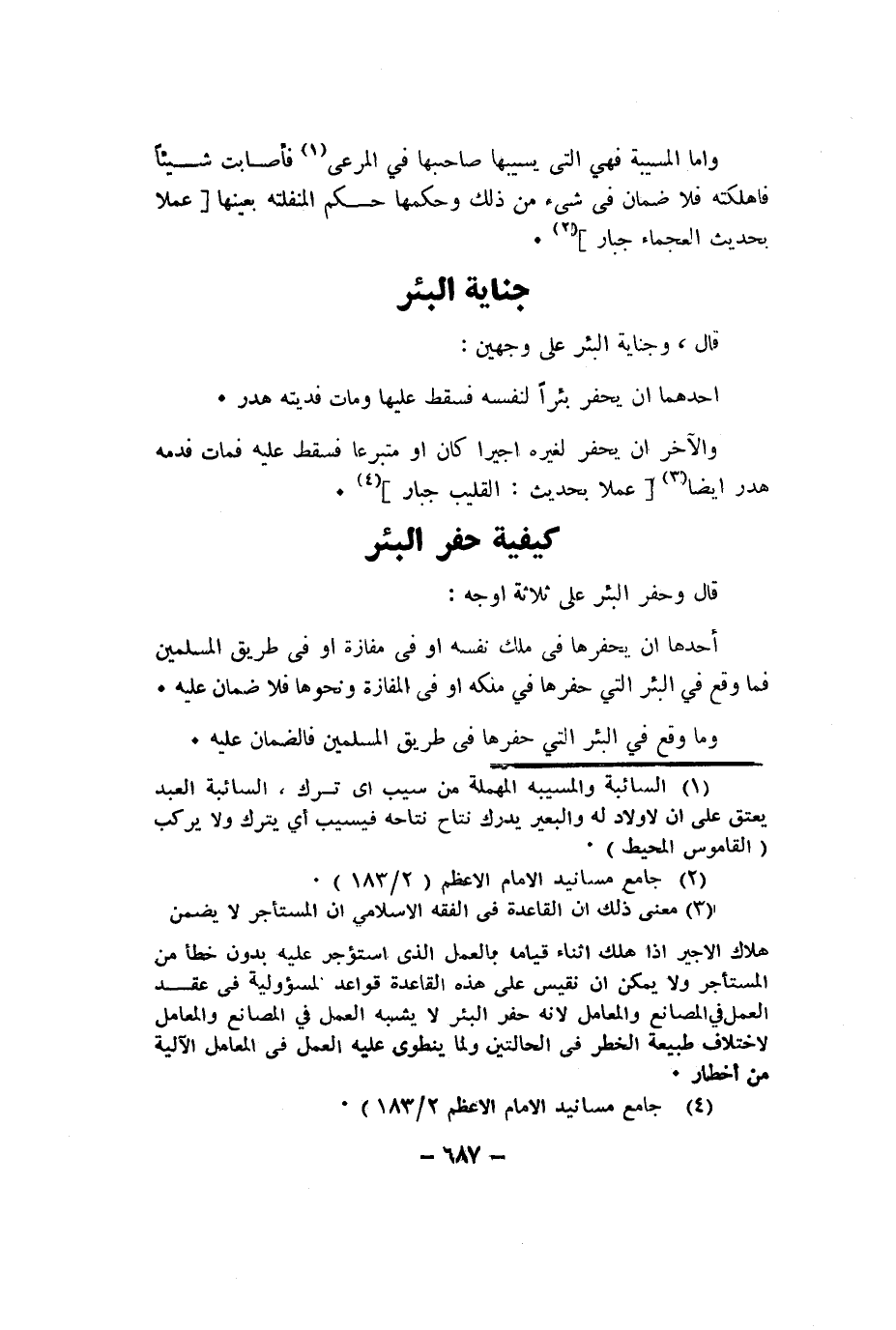 قَالَ وَجِنَايَة الْبِئْر على وَجْهَيْن