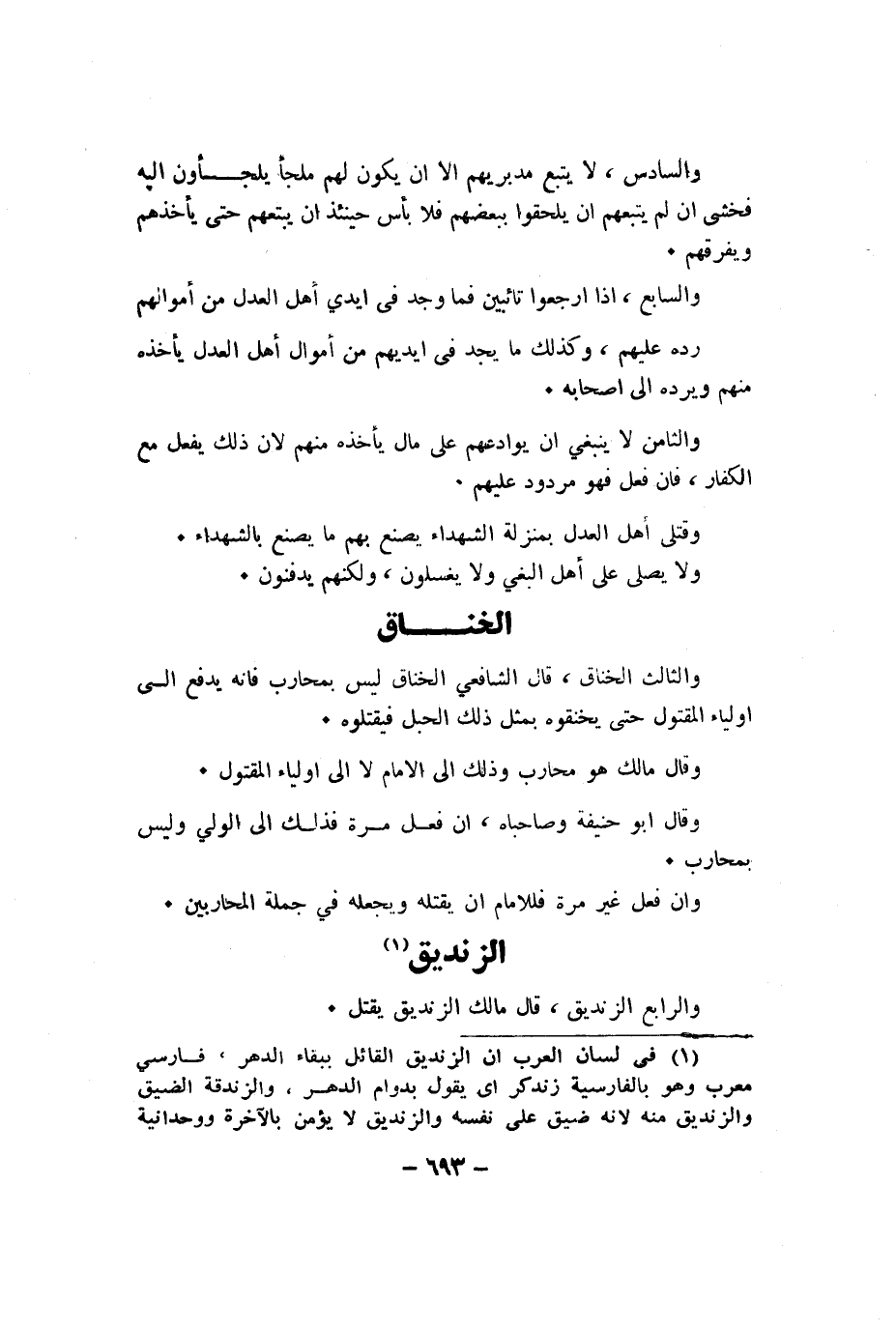 وَالرَّابِع الزنديق قَالَ مَالك الزنديق يقتل