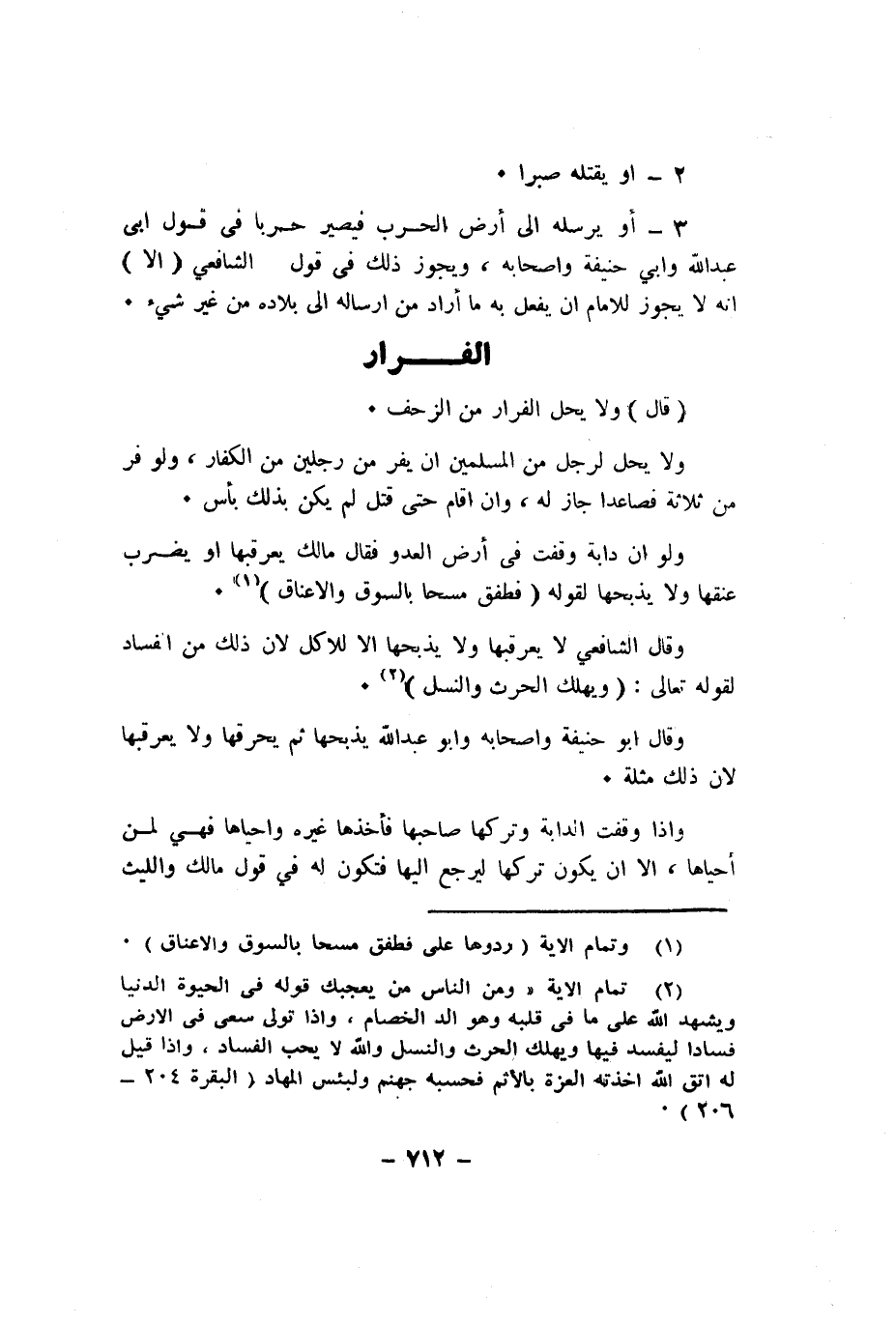 وَلَو ان دَابَّة وقفت فِي أَرض الْعَدو فَقَالَ مَالك يعرقبها اَوْ يضْرب عُنُقهَا وَلَا يذبحها لقَوْله فَطَفِقَ مسحا بِالسوقِ والاعناق