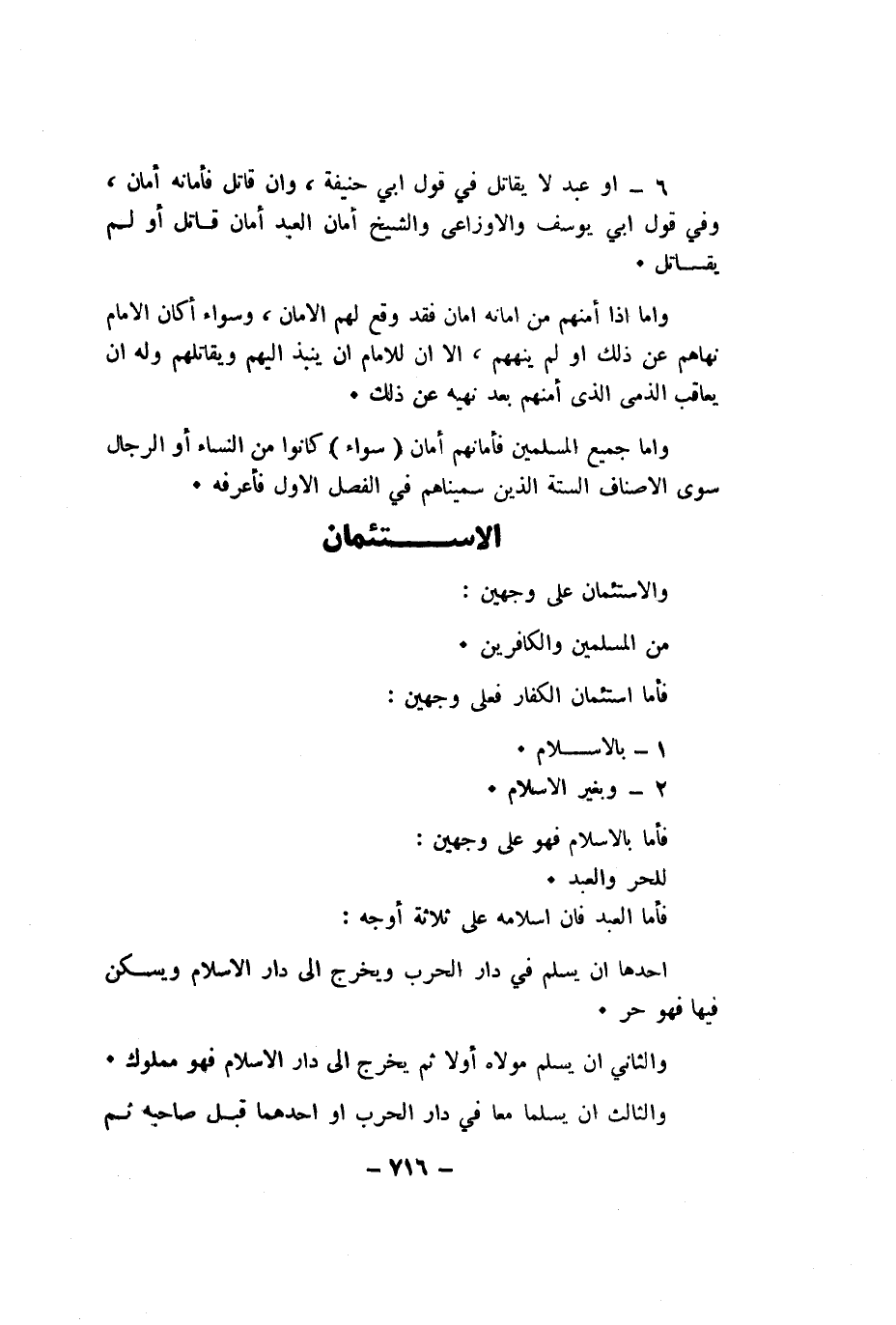 فَأَما استئمان الْكفَّار فعلى وَجْهَيْن 1 بالاسلام 2 وَبِغير الاسلام