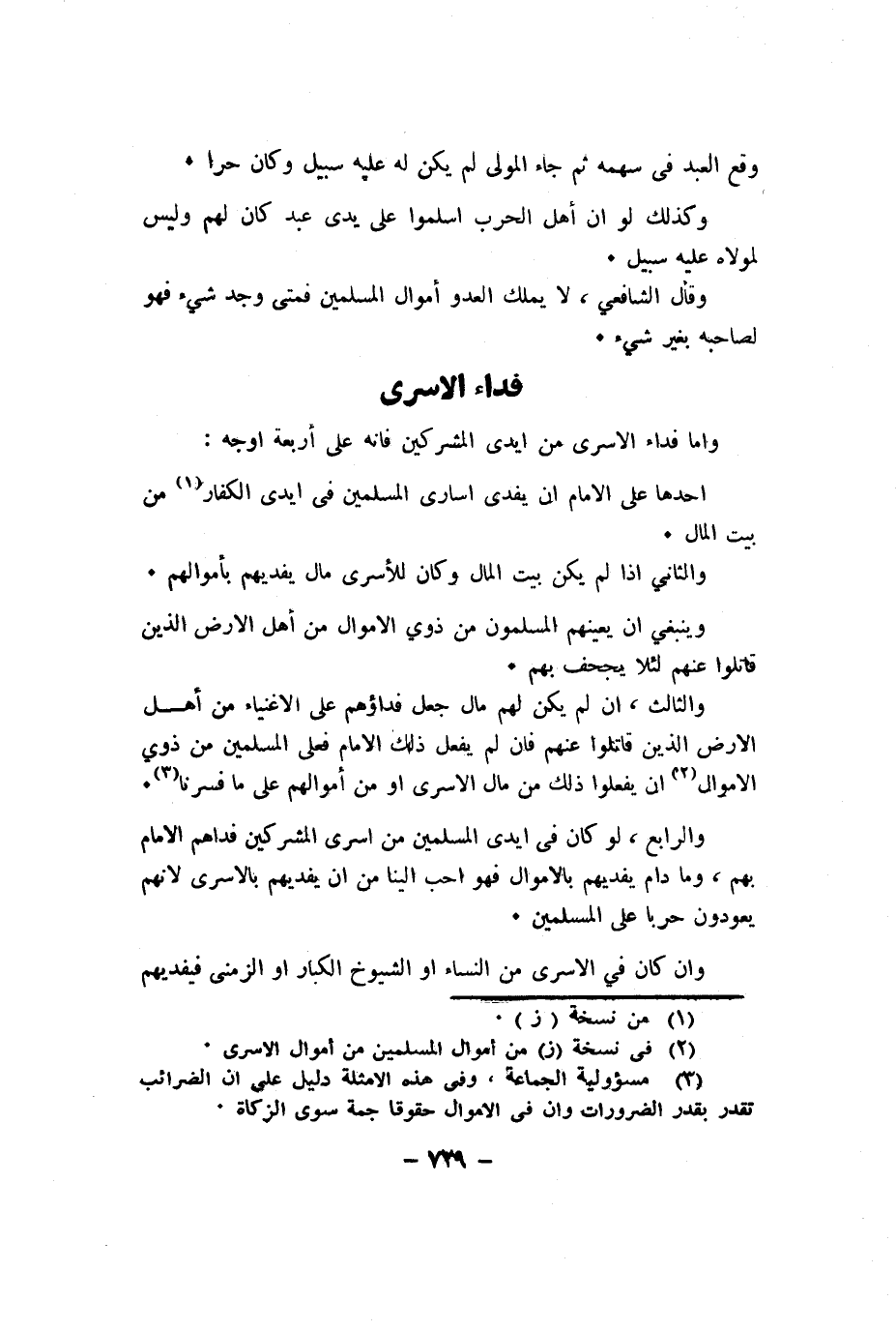 احدها على الامام ان يفدى اسارى الْمُسلمين فى ايدى الْكفَّار من بَيت المَال