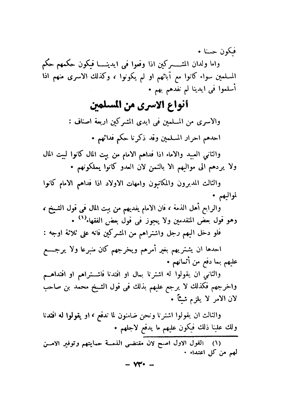 وَالرَّابِع أهل الذِّمَّة فان الامام يفديهم من بَيت المَال فى قَول الشَّيْخ وَهُوَ قَول بعض الْمُتَقَدِّمين وَلَا يجوز فى قَول بعض الْفُقَهَاء