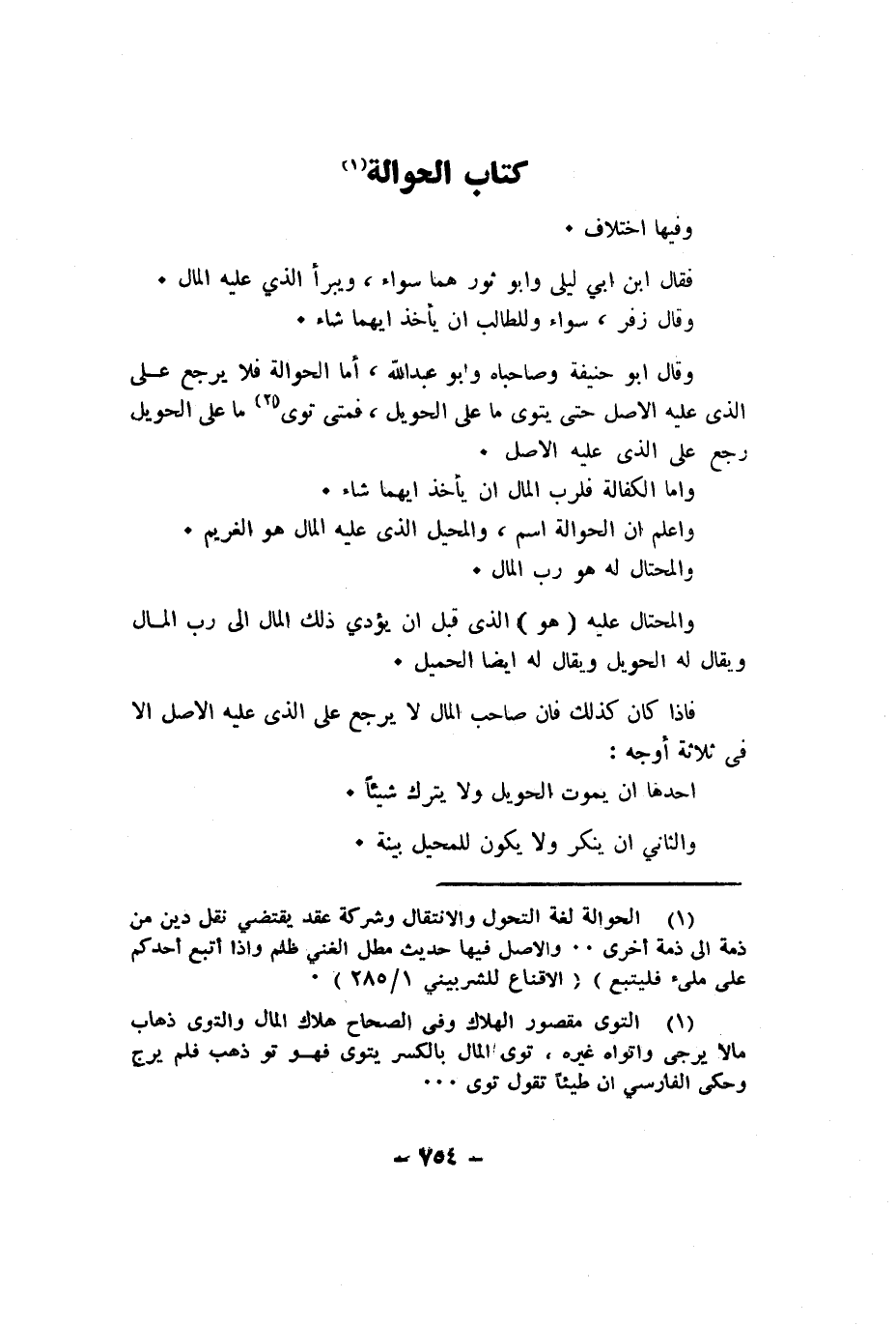 وَقَالَ ابو حنيفَة وصاحباه وابو عبد الله أما الْحِوَالَة فَلَا يرجع على الذى عَلَيْهِ الاصل حَتَّى يتوى مَا على الحويل فَمَتَى توى مَا على الحويل رَجَعَ على الذى عَلَيْهِ الاصل