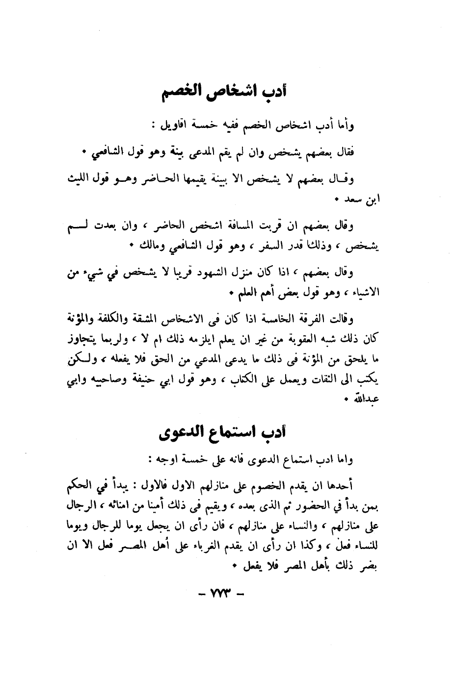 أَحدهَا ان يقدم الْخُصُوم على مَنَازِلهمْ الاول فَالْأول يبْدَأ فِي الحكم بِمن بَدَأَ فِي الْحُضُور ثمَّ الذى بعده وَيُقِيم فى ذَلِك أَمينا من أمنائه الرِّجَال على مَنَازِلهمْ وَالنِّسَاء على مَنَازِلهمْ فان رأى ان يَجْعَل يَوْمًا للرِّجَال وَيَوْما للنِّسَاء فعل وَكَذَا ان رأى ان يقدم الغرباء على أهل الْمصر فعل الا ان يضر ذَلِك بِأَهْل الْمصر فَلَا يفعل