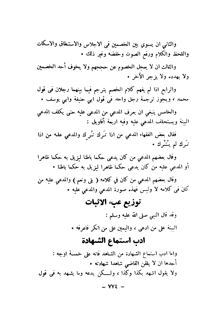 وَالثَّانِي ان يُسَوِّي بَين الْخَصْمَيْنِ فى الاجلاس والاستنطاق والاسكات واللحظ وَالْكَلَام وَرفع الصَّوْت وخفضه وَغير ذَلِك