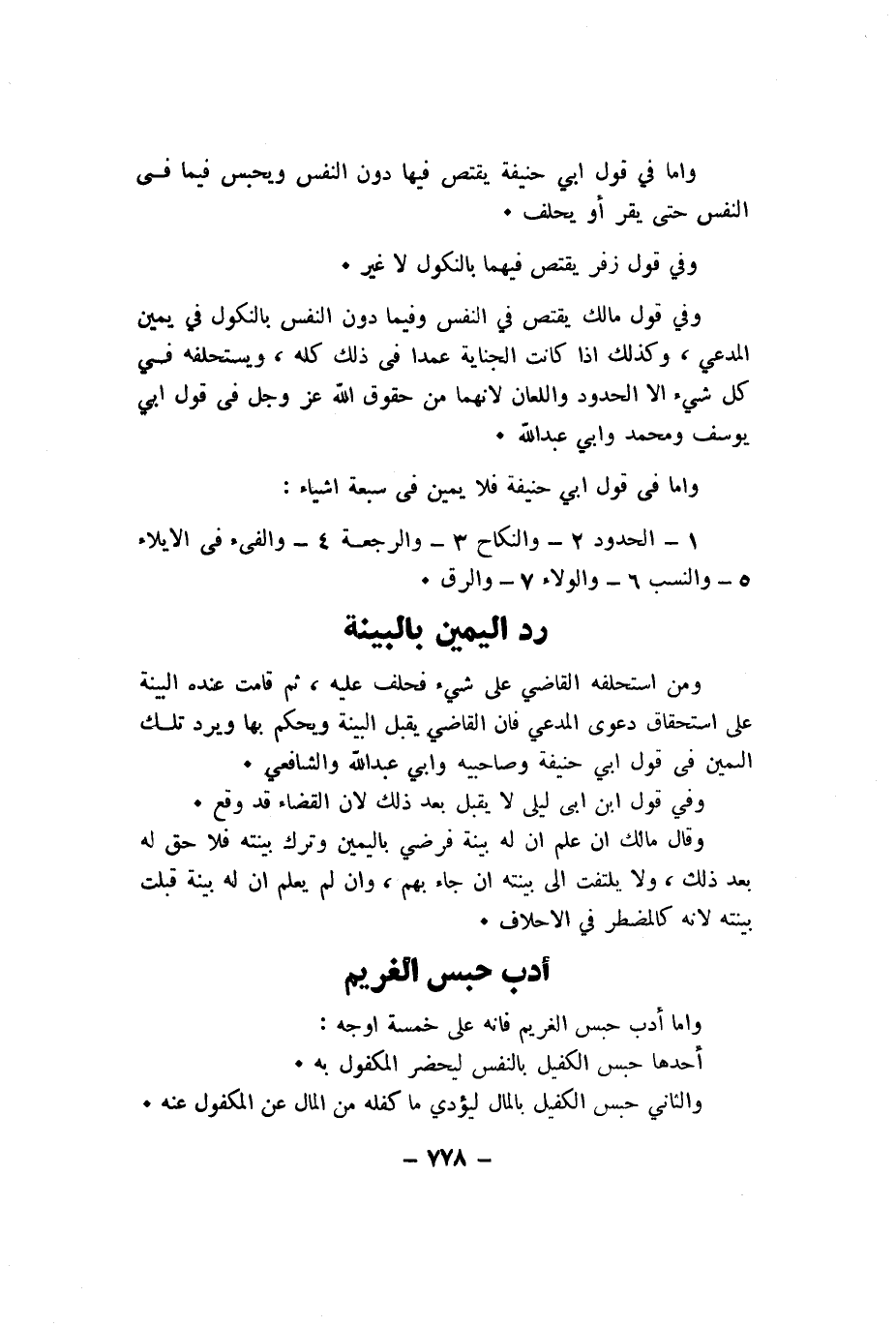 واما فى قَول ابي حنيفَة فَلَا يَمِين فى سَبْعَة اشياء 1 الْحُدُود 2 وَالنِّكَاح 3 وَالرَّجْعَة 4 والفئ فى الايلاء 5 وَالنّسب 6 وَالْوَلَاء 7 وَالرّق