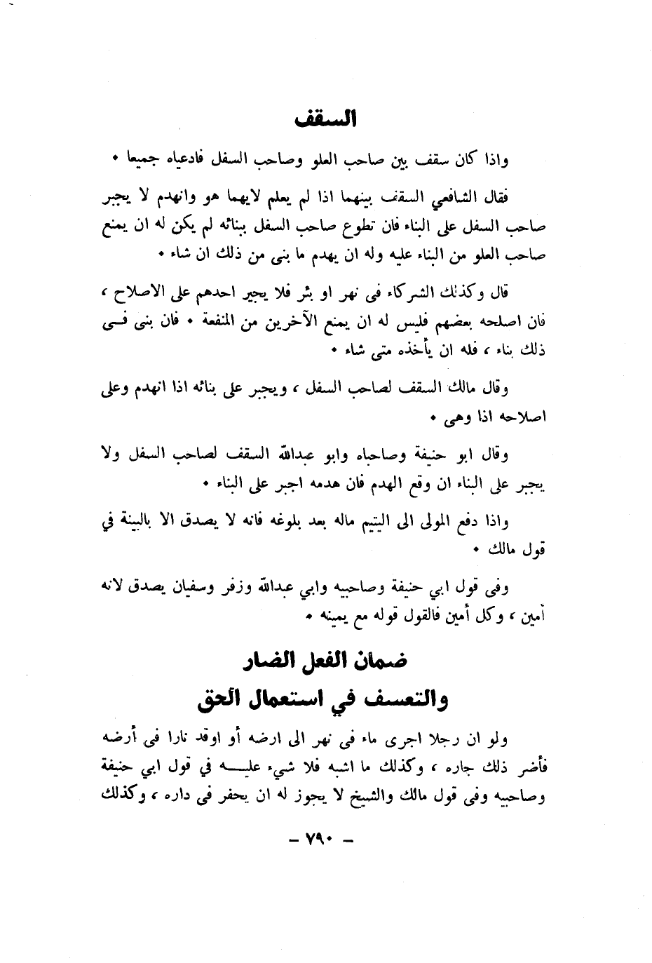 وَلَو ان رجلا اجرى مَاء فى نهر الى ارضه أَو اوقد نَارا فى أرضه فأضر ذَلِك جَاره وَكَذَلِكَ مَا اشبه فَلَا شَيْء عَلَيْهِ فِي قَول ابي حنيفَة وصاحبيه وفى قَول مَالك وَالشَّيْخ لَا يجوز لَهُ ان يحْفر فى دَاره وَكَذَلِكَ