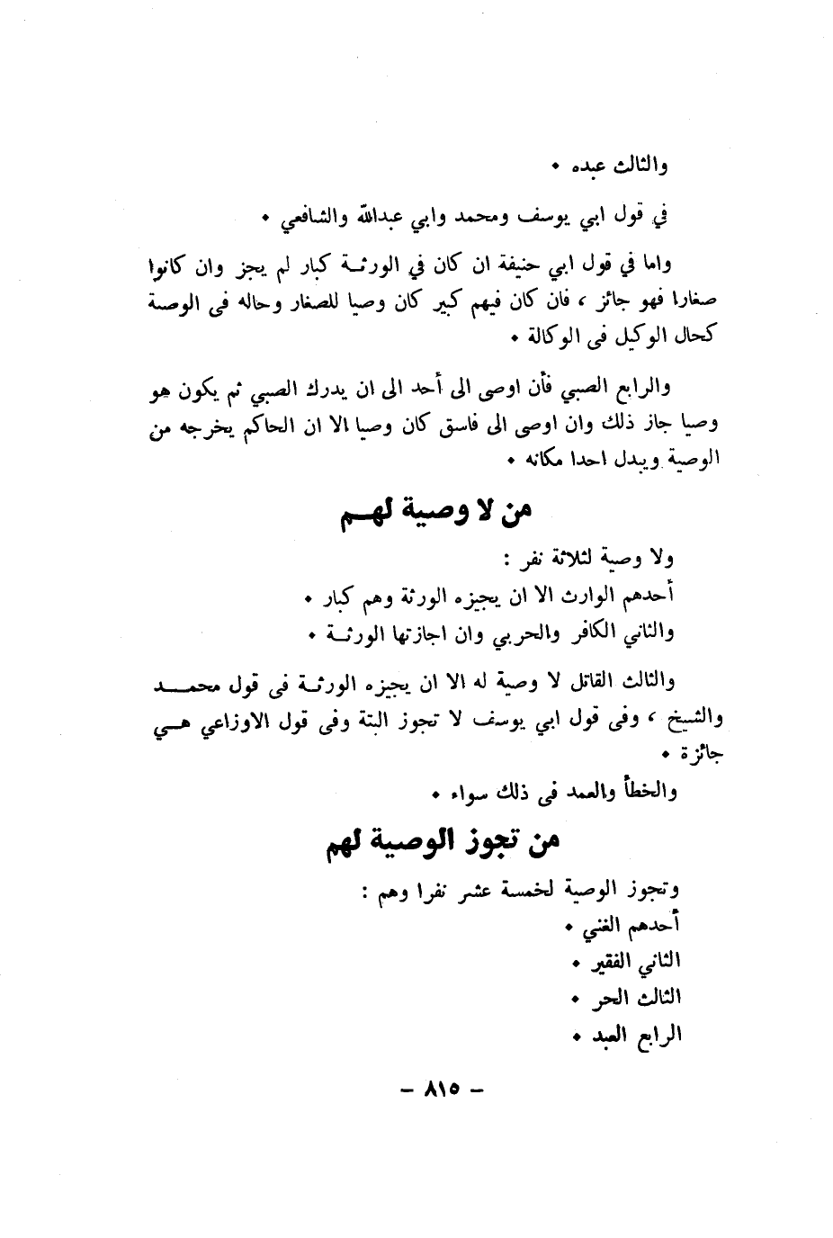 وَتجوز الْوَصِيَّة لخمسة عشر نَفرا وهم