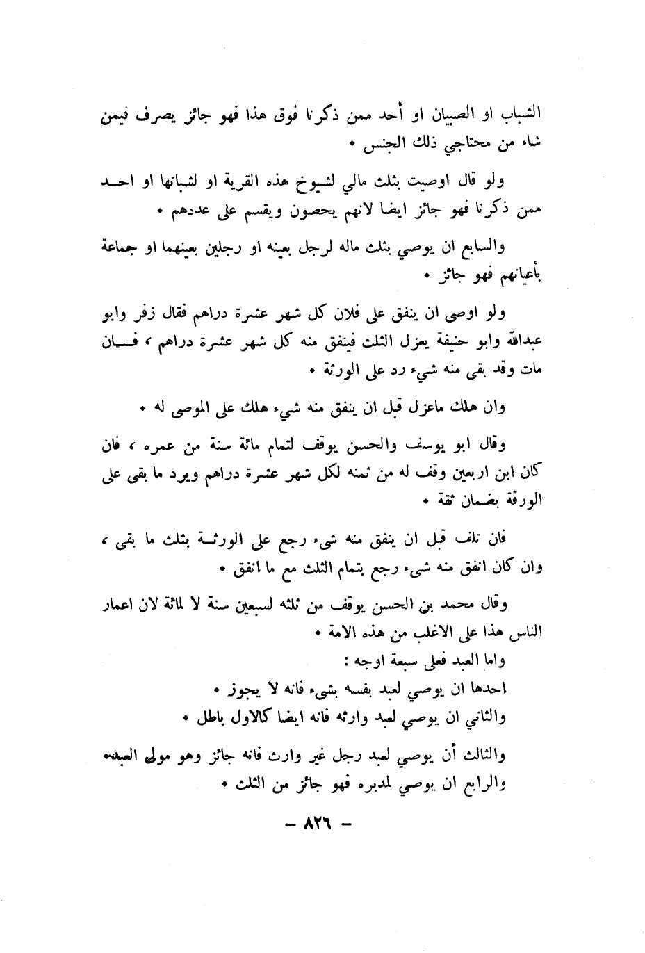 وَالسَّابِع ان يُوصي بِثلث مَاله لرجل بِعَيْنِه اَوْ رجلَيْنِ بعينهما اَوْ جمَاعَة بأعيانهم فَهُوَ جَائِز