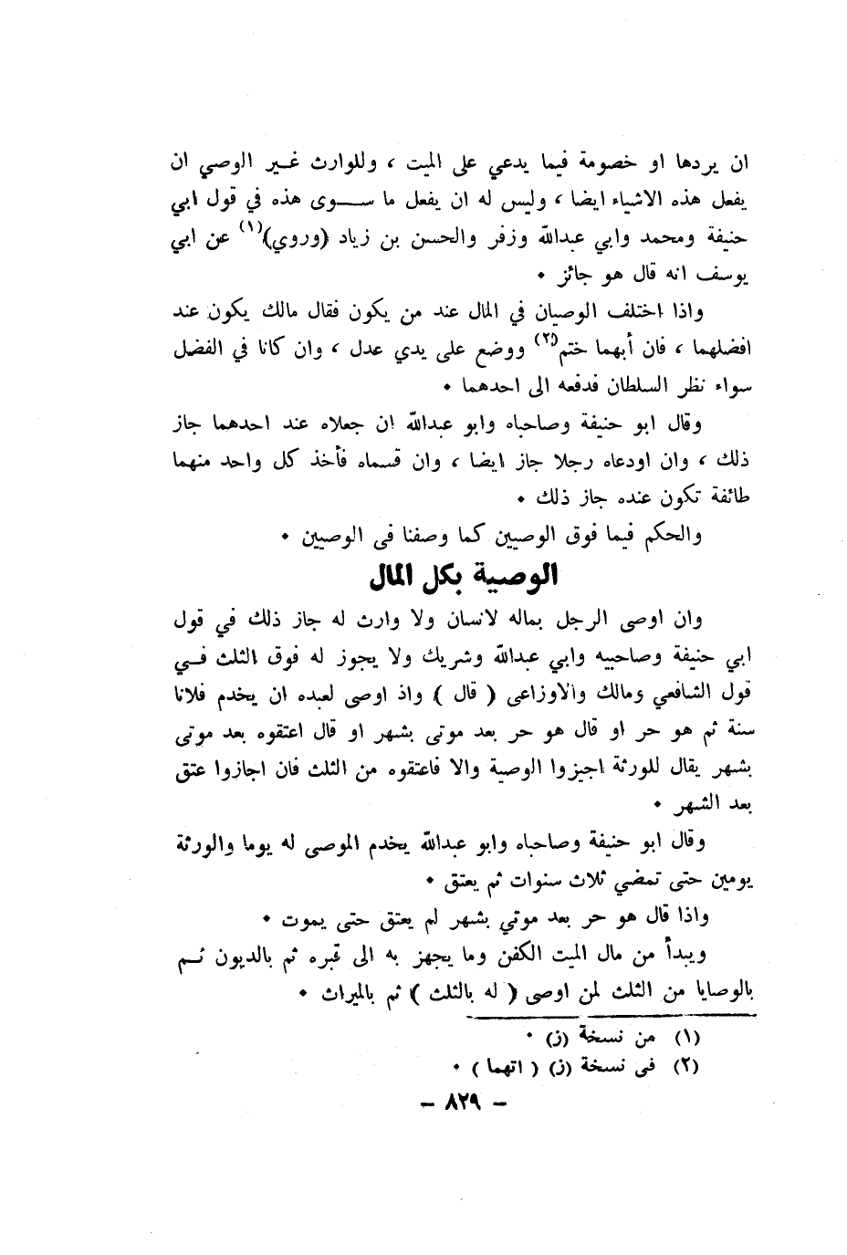 الْوَصِيَّة بِكُل المَال