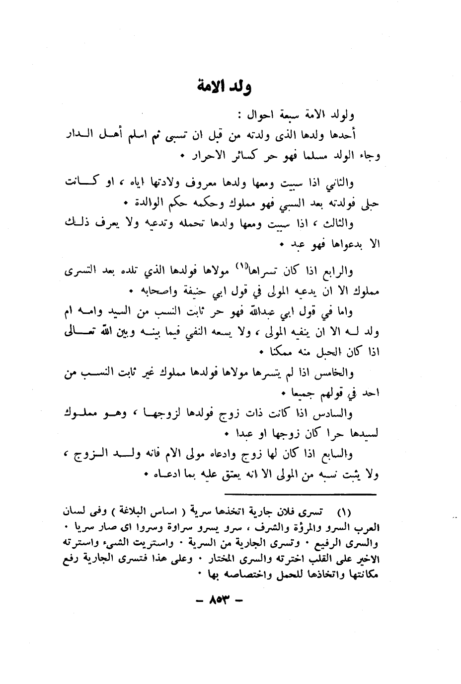 ولولد الامة سَبْعَة احوال
