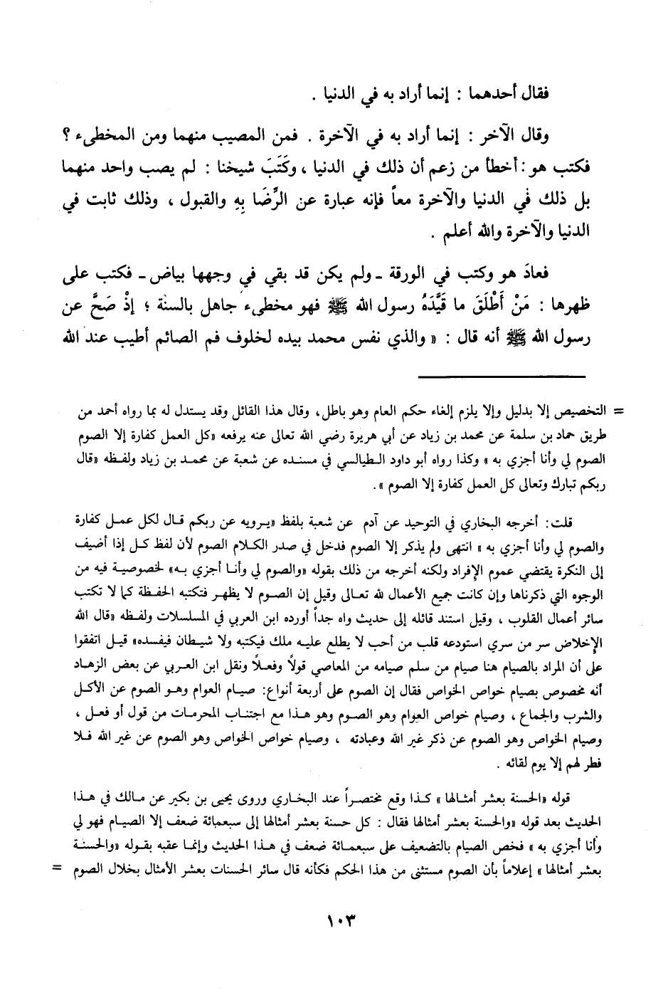 فَعَاد هُوَ وَكتب فِي الورقة وَلم يكن قد بَقِي فِي وَجههَا بَيَاض فَكتب على ظهرهَا من أطلق مَا قَيده رَسُول الله صلى الله عَلَيْهِ وَسلم فَهُوَ مخطىء جَاهِل بِالسنةِ إِذا صَحَّ عَن رَسُول الله صلى اله عَلَيْهِ وَسلم أَنه قَالَ وَالَّذِي نفس مُحَمَّد بِيَدِهِ لخلوف فَم الصَّائِم أطيب عِنْد الله