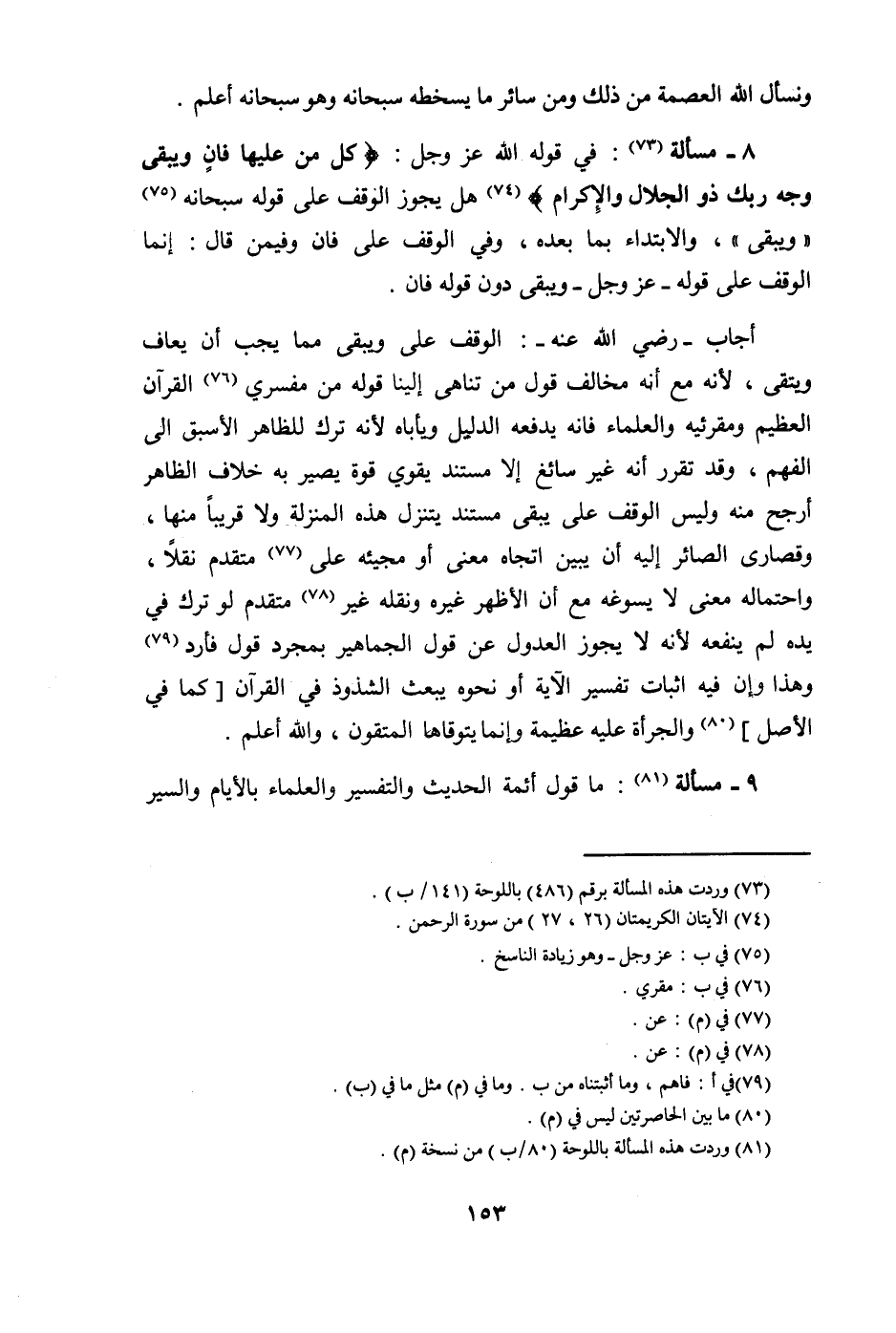 @ الْجلَال وَالْإِكْرَام هَل يجوز الْوَقْف على قَوْله سُبْحَانَهُ وَيبقى والابتداء بِمَا بعده وَفِي الْوَقْف على فان وفيمن قَالَ إِنَّمَا الْوَقْف على قَوْله عز وَجل وَيبقى دون قَوْله فان