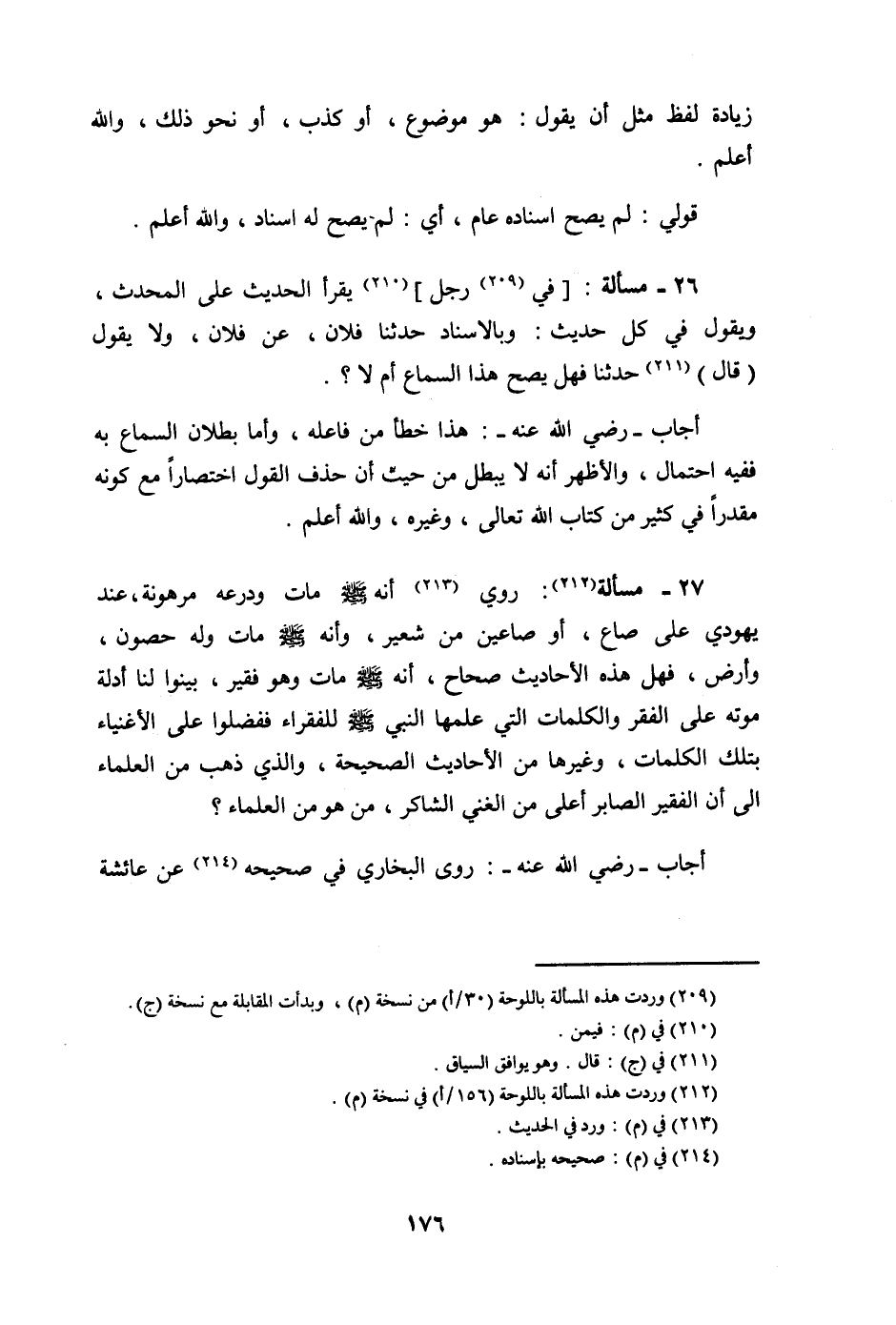 27 - مَسْأَلَة رُوِيَ أَنه صلى الله عَلَيْهِ وَسلم مَاتَ وَدِرْعه مَرْهُونَة عِنْد يَهُودِيّ على صَاع أَو صَاعَيْنِ من شعير وَأَنه صلى الله عَلَيْهِ وَسلم مَاتَ وَله حصون وَأَرْض فَهَل هَذِه الْأَحَادِيث صِحَاح أَنه صلى الله عَلَيْهِ وَسلم مَاتَ وَهُوَ فَقير بينوا لنا أَدِلَّة مَوته على الْفقر والكلمات الَّتِي علمهَا النَّبِي صلى الله عَلَيْهِ وَسلم للْفُقَرَاء ففضلوا على الْأَغْنِيَاء بِتِلْكَ الْكَلِمَات وَغَيرهَا من الْأَحَادِيث الصَّحِيحَة وَالَّذِي ذهب من الْعلمَاء الى أَن الْفَقِير الصابر أَعلَى من الْغَنِيّ الشاكر من هُوَ من الْعلمَاء