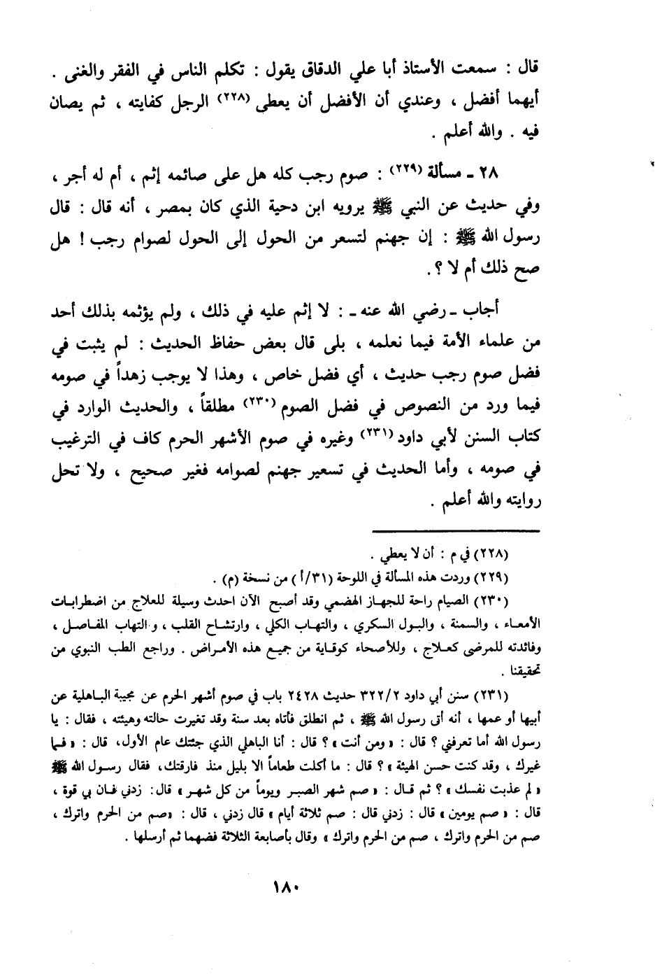 28 - مَسْأَلَة صَوْم رَجَب كُله هَل على صائمه إِثْم أم لَهُ أجر وَفِي حَدِيث عَن النَّبِي صلى الله عَلَيْهِ وَسلم يرويهِ ابْن دحْيَة الَّذِي كَانَ بِمصْر أَنه قَالَ قَالَ رَسُول الله صلى الله عَلَيْهِ وَسلم إِن جَهَنَّم لتسعر من الْحول إِلَى الْحول لصوام رَجَب هَل صَحَّ ذَلِك أم لَا