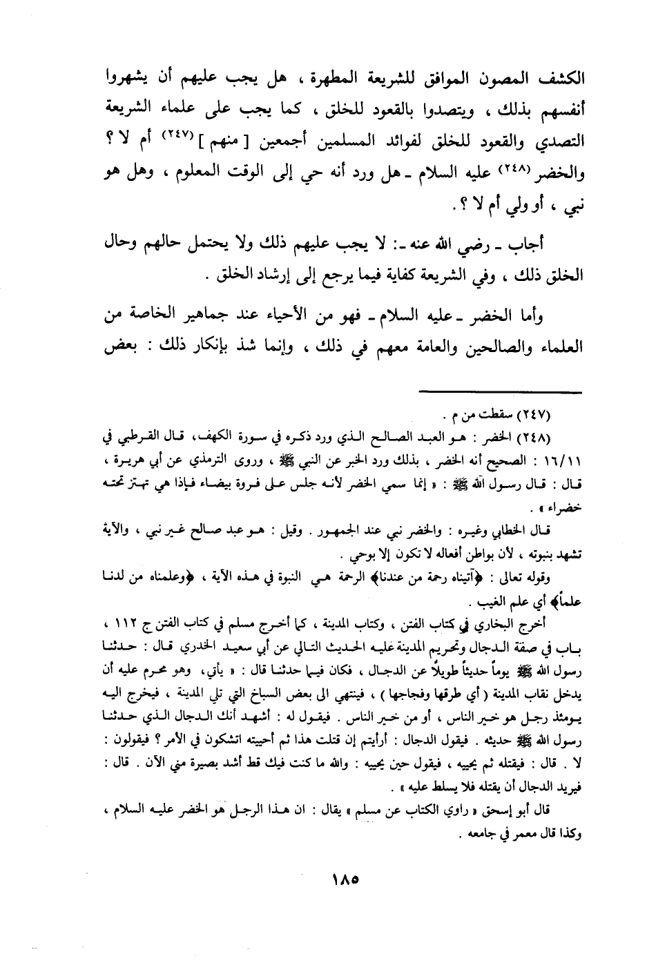 @ الْكَشْف المصون الْمُوَافق للشريعة المطهرة هَل يجب عَلَيْهِم أَن يشهروا أنفسهم بذلك ويتصدوا بالقعود لِلْخلقِ كَمَا يجب على عُلَمَاء الشَّرِيعَة التصدي وَالْقعُود لِلْخلقِ لفوائد الْمُسلمين أَجْمَعِينَ مِنْهُم أم لَا وَالْخضر عَلَيْهِ السَّلَام هَل ورد أَنه حَيّ إِلَى الْوَقْت الْمَعْلُوم وَهل هُوَ نَبِي أَو ولي أم لَا
