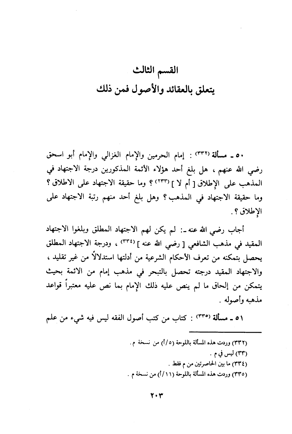 50 - مَسْأَلَة إِمَام الْحَرَمَيْنِ وَالْإِمَام الْغَزالِيّ وَالْإِمَام أَبُو اسحق رَضِي الله عَنْهُم هَل بلغ أحد هَؤُلَاءِ الْأَئِمَّة الْمَذْكُورين دَرَجَة الِاجْتِهَاد فِي الْمَذْهَب على الْإِطْلَاق أم لَا وَمَا حَقِيقَة الِاجْتِهَاد على الاطلاق وَمَا حَقِيقَة الإجتهاد فِي الْمَذْهَب وَهل بلغ أحد مِنْهُم رُتْبَة الِاجْتِهَاد على الْإِطْلَاق