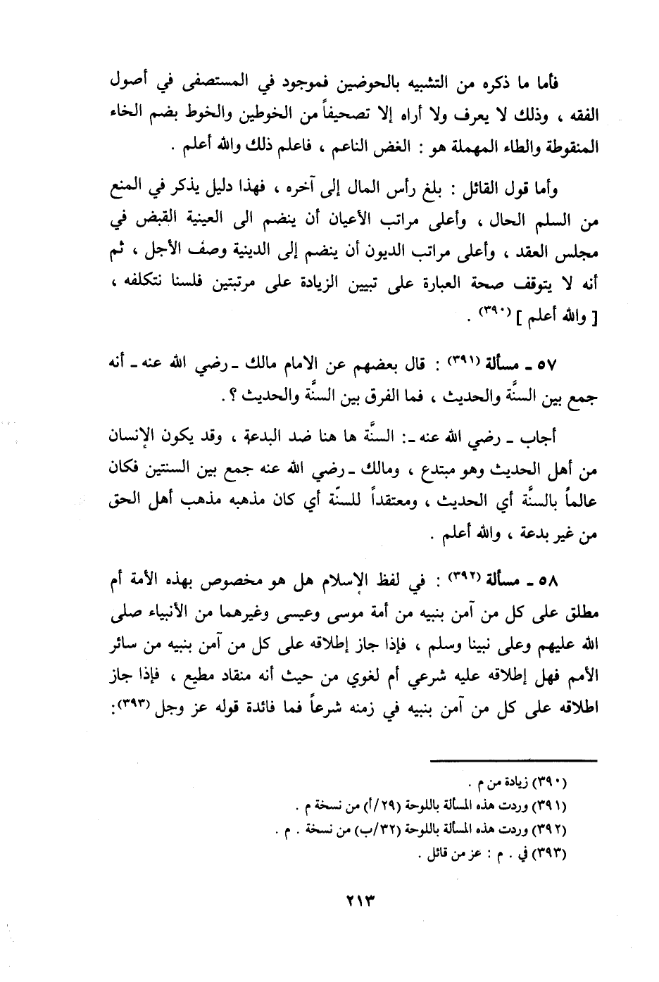 57 - مَسْأَلَة قَالَ بَعضهم عَن الامام مَالك رَضِي الله عَنهُ أَنه جمع بَين السّنة والْحَدِيث فَمَا الْفرق بَين السّنة والْحَدِيث