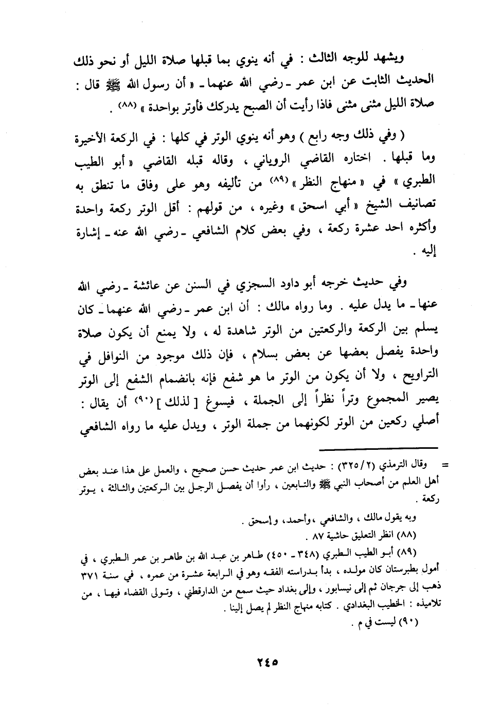 @ وَيشْهد للْوَجْه الثَّالِث فِي أَنه يَنْوِي بِمَا قبلهَا صَلَاة اللَّيْل أَو نَحْو ذَلِك الحَدِيث الثَّابِت عَن ابْن عمر رَضِي الله عَنْهُمَا أَن رَسُول الله صلى الله عَلَيْهِ وَسلم قَالَ صَلَاة اللَّيْل مثنى مثنى فَإِذا رَأَيْت أَن الصُّبْح يدركك فأوتر بِوَاحِدَة