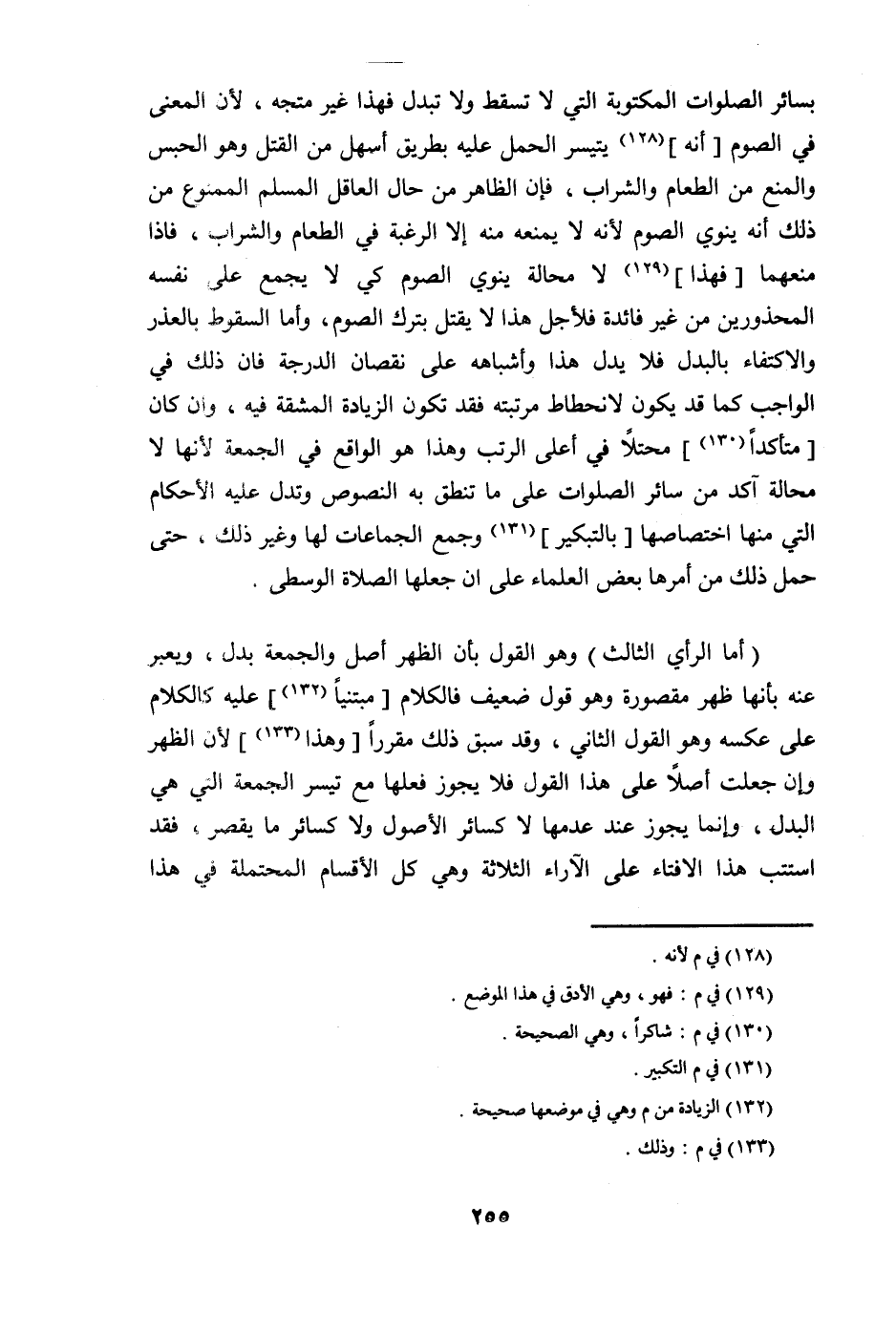 @ بِسَائِر الصَّلَوَات الْمَكْتُوبَة الَّتِي لَا تسْقط وَلَا تبدل فَهَذَا غير مُتَّجه لِأَن الْمَعْنى فِي الصَّوْم أَنه يَتَيَسَّر الْحمل عَلَيْهِ بطرِيق أسهل من الْقَتْل وَهُوَ الْحَبْس وَالْمَنْع من الطَّعَام وَالشرَاب فَإِن الظَّاهِر من حَال الْعَاقِل الْمُسلم الْمَمْنُوع من ذَلِك أَنه يَنْوِي الصَّوْم لِأَنَّهُ لَا يمنعهُ مِنْهُ إِلَّا الرَّغْبَة فِي الطَّعَام وَالشرَاب فاذا منعهما فَهَذَا لَا محَالة يَنْوِي الصَّوْم كي لَا يجمع على نَفسه المحذورين من غير فَائِدَة فلأجل هَذَا لَا يقتل بترك الصَّوْم وَأما السُّقُوط بالعذر والاكتفاء بِالْبَدَلِ فَلَا يدل هَذَا وأشباهه على نُقْصَان الدرجَة فان ذَلِك فِي الْوَاجِب كَمَا قد يكون لانحطاط مرتبته فقد تكون الزِّيَادَة الْمَشَقَّة فِيهِ وان كَانَ متأكدا محتلا فِي أَعلَى الرتب وَهَذَا هُوَ الْوَاقِع فِي الْجُمُعَة لِأَنَّهَا لَا محَالة آكِد من سَائِر الصَّلَوَات على مَا تنطق بِهِ النُّصُوص وتدل عَلَيْهِ الْأَحْكَام الَّتِي مِنْهَا اختصاصها بالتبكير وَجمع الْجَمَاعَات لَهَا وَغير ذَلِك حَتَّى حمل ذَلِك من أمرهَا بعض الْعلمَاء على ان جعلهَا الصَّلَاة الْوُسْطَى