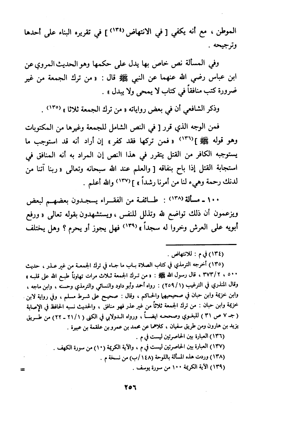فَمن الْوَجْه الَّذِي قرر فِي النَّص الشَّامِل للْجُمُعَة وَغَيرهَا من المكتوبات وَهُوَ قَوْله صلى الله عَلَيْهِ وَسلم فَمن تَركهَا فقد كفر إِن أَرَادَ أَنه قد اسْتوْجبَ مَا يستوجبه الْكَافِر من الْقَتْل يَتَقَرَّر فِي هَذَا النَّص إِن المُرَاد بِهِ أَنه الْمُنَافِق فِي استجابة الْقَتْل إِذا باح بنفاقه وَالْعلم عِنْد الله سُبْحَانَهُ وَتَعَالَى رَبنَا آتنا من لَدُنْك رَحْمَة وهيء لنا من أمرنَا رشدا وَالله أعلم