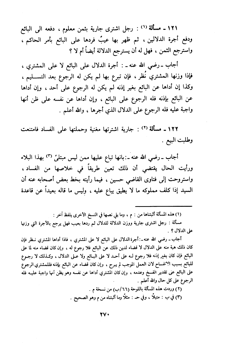 @ مَسْأَلَة رجل اشْترى جَارِيَة بِثمن مَعْلُوم دَفعه الى البَائِع وَدفع أُجْرَة الدلالين ثمَّ ظهر بهَا عيب فَردهَا على البَائِع بِأَمْر الْحَاكِم واسترجع الثّمن فَهَل لَهُ أَن يسترجع الدّلَالَة أَيْضا أم لَا