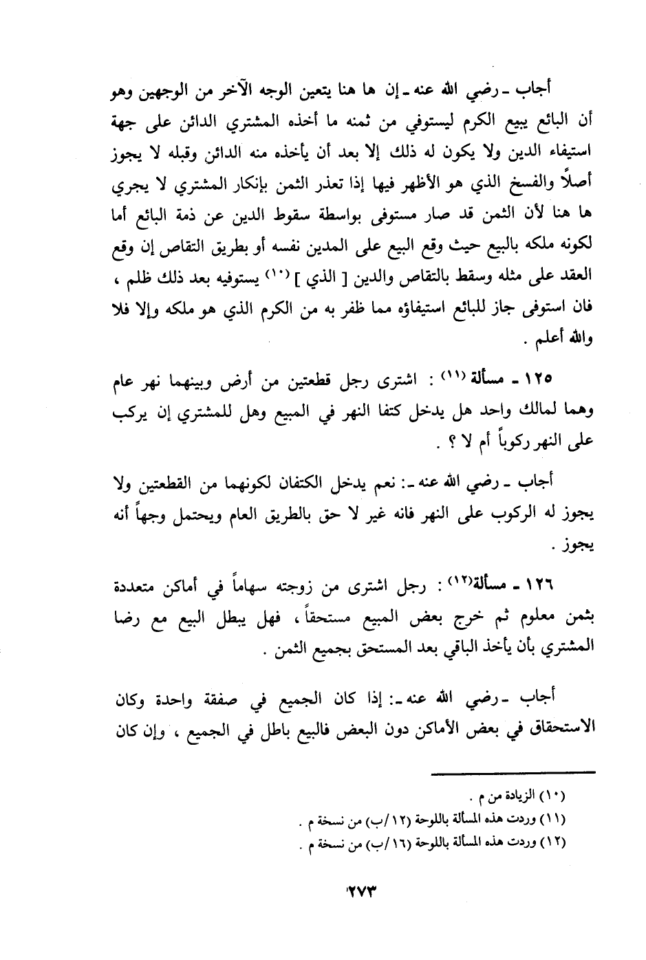 125 - مَسْأَلَة اشْترى رجلا قطعتين من أَرض وَبَينهمَا نهر عَام وهما لمَالِك وَاحِد هَل يدْخل كَتفًا النَّهر فِي الْمَبِيع وَهل للْمُشْتَرِي إِن يركب على النَّهر ركوبا أم لَا