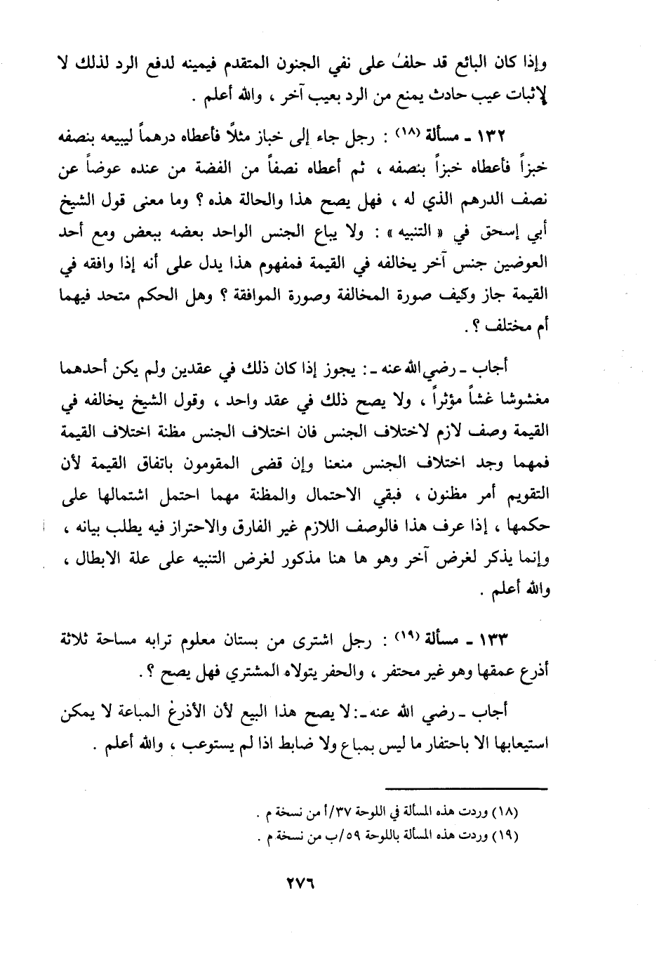 133 - مَسْأَلَة رجل اشْترى من بُسْتَان مَعْلُوم ترابه مساحة ثَلَاثَة أَذْرع عمقها وَهُوَ غير محتفر والحفر يَتَوَلَّاهُ المُشْتَرِي فَهَل يَصح
