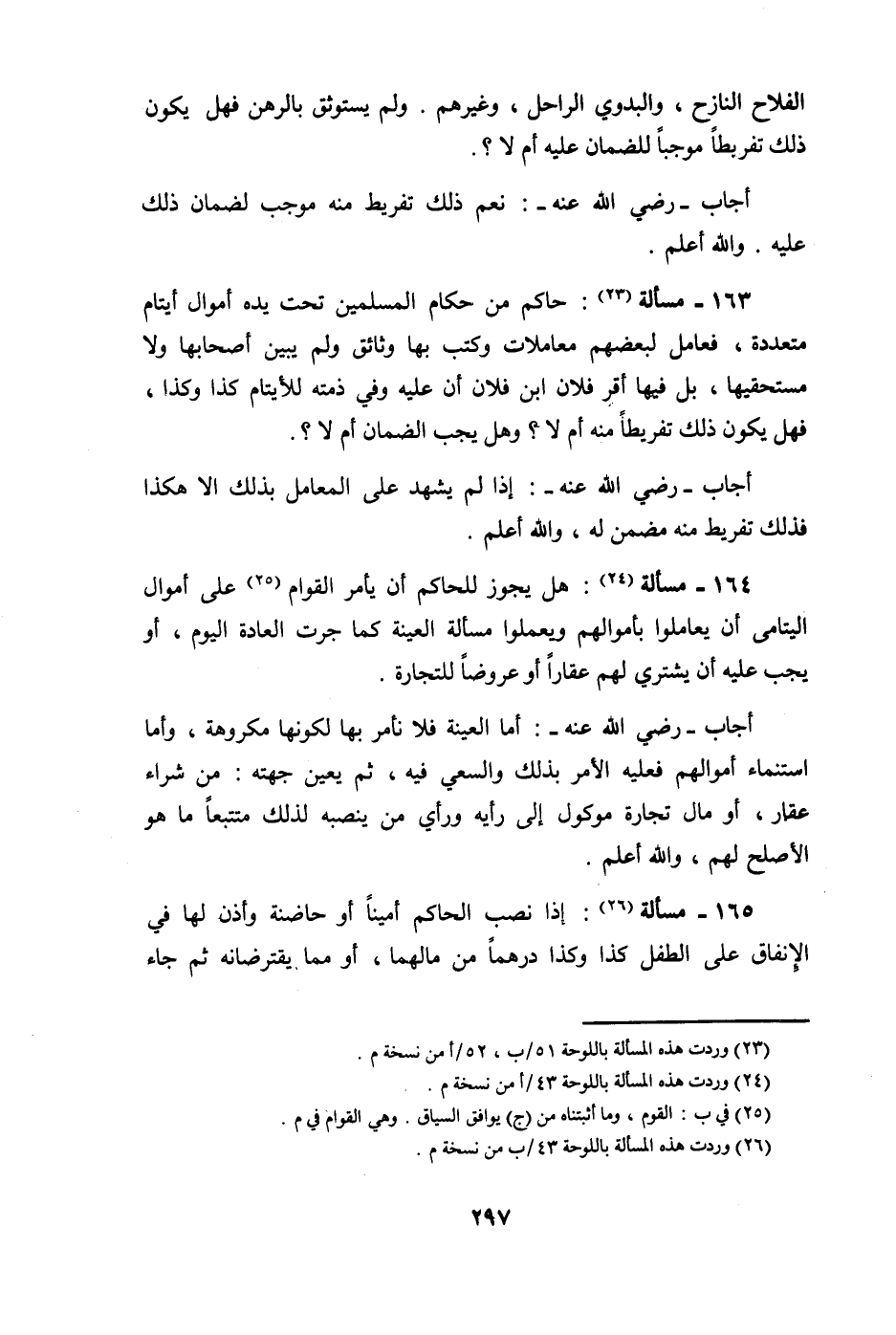 164 - مَسْأَلَة هَل يجوز للْحَاكِم أَن يَأْمر القوام على أَمْوَال الْيَتَامَى أَن يعاملوا بِأَمْوَالِهِمْ ويعملوا مَسْأَلَة الْعينَة كَمَا جرت الْعَادة الْيَوْم أَو يجب عَلَيْهِ أَن يَشْتَرِي لَهُ عقارا أَو عرُوضا للتِّجَارَة