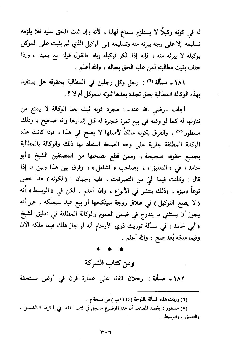 181 - مَسْأَلَة رجل وكل رجلَيْنِ فِي الْمُطَالبَة بحقوقه هَل يَسْتَفِيد بِهَذِهِ الْوكَالَة الْمُطَالبَة بِحَق تجدّد بعْدهَا ثُبُوته للْمُوكل أم لَا